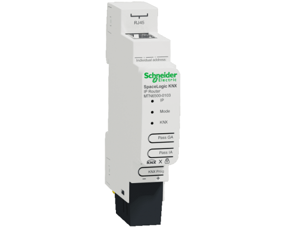 The Schneider SpaceLogic KNX IP Router (MTN6500-0103) is a next-generation communication interface that connects KNX TP (Twisted Pair) networks with IP networks. It acts as both a line/area coupler and IP interface for ETS programming, making it an essential backbone component for medium to large KNX installations.